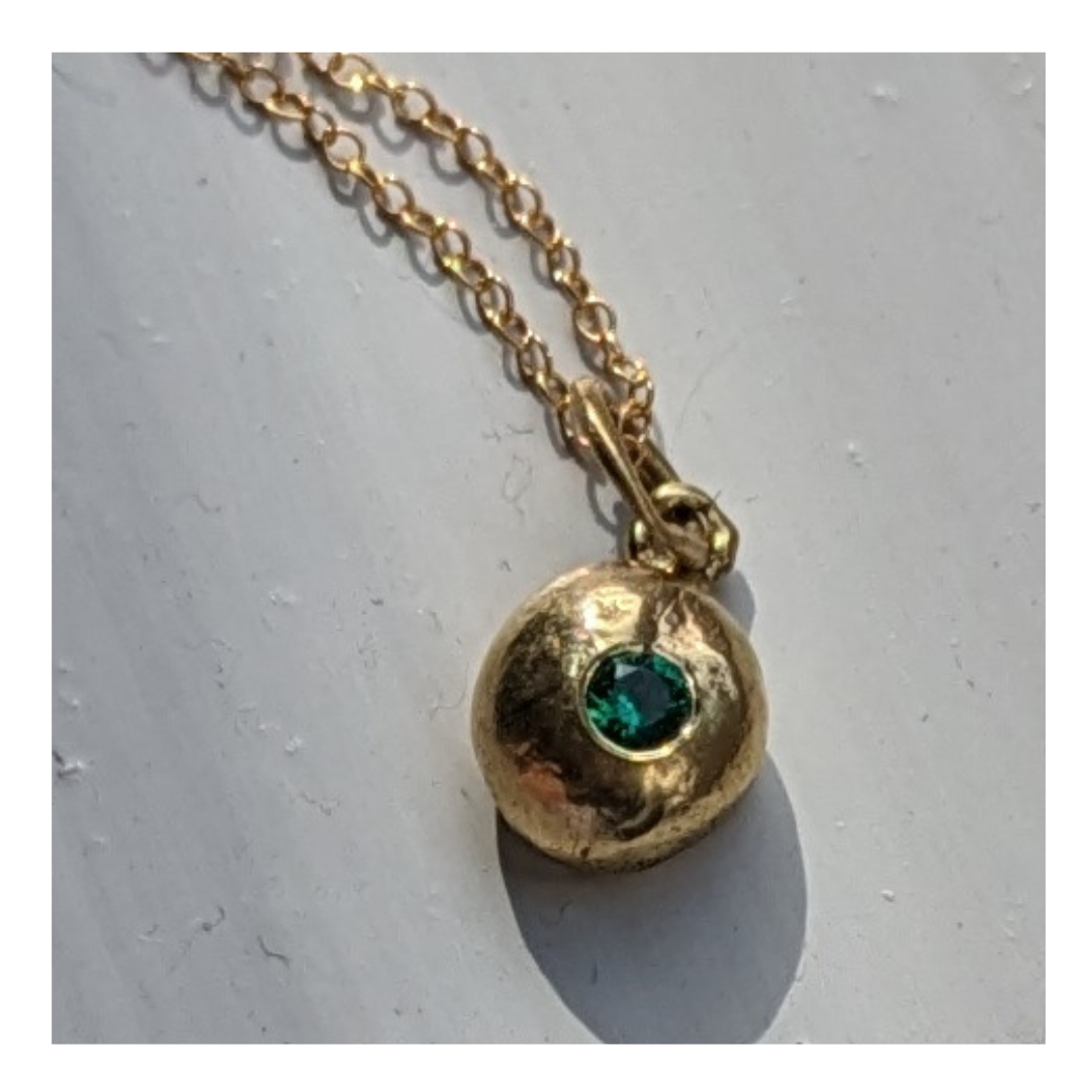 10mm wide half spherical melted brass pendant with flush set stone.